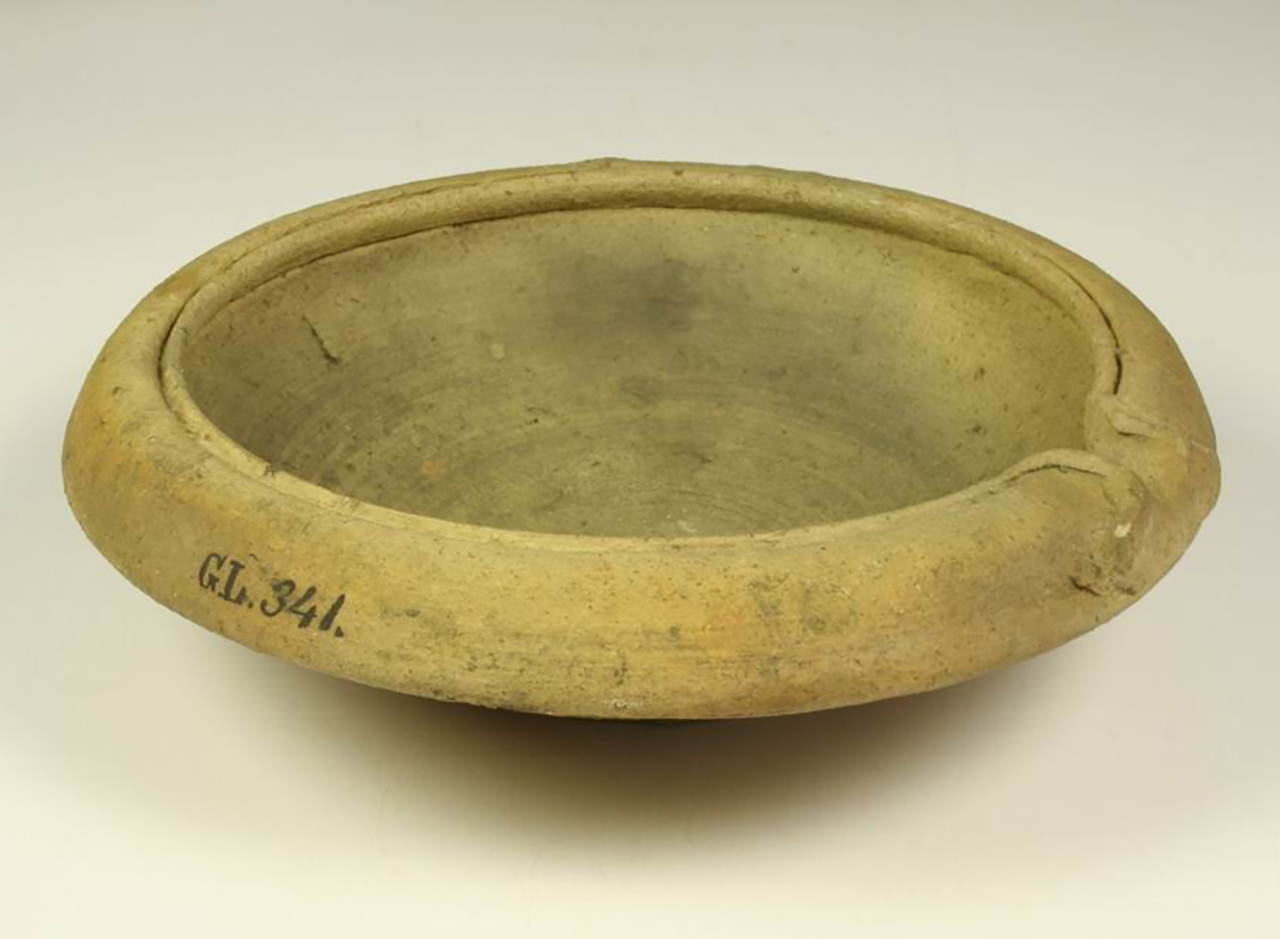Het is een slim schaaltje en nog mooi om te zien ook. Het is iets meer dan 6 centimeter hoog en heeft een diameter van 23,1 centimeter. Bovenin de rand zit een uitsparing zodat je de vloeibare inhoud van de schaal er gemakkelijk uit kon schenken. Dit stukje aardewerk met dat handige schenktuitje wordt een wrijfschaal genoemd. Het is Romeins aardewerk, gevonden in Heijen. Aangezien de Romeinen in de eerste eeuwen na het begin van onze jaartelling door deze contreien rondzwierven en er woonden, zal het een kleine tweeduizend jaar oud zijn.