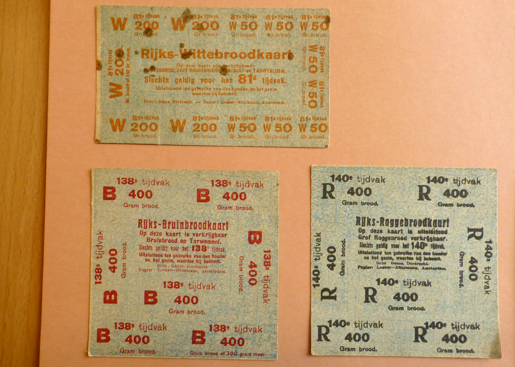 Waar al snel een tekort aan was, was brood. Nederland verbouwde weinig graan, was afhankelijk van aanvoer vanuit de VS. Maar Engeland, dat vreesde dat goederen via Nederland alsnog in Duitsland zouden komen, blokkeerde àlle schepen. Weldra werd witbrood verboden, omdat voor de productie meer tarwe nodig was. In 1916 begon de distributie van levensmiddelen via bonnen. Eerst om te voorkomen dat de goederen te duur werden, later, in 1917, was het nodig omdat er gewoonweg te weinig voorhanden was. Gemeenten richtten distributiekantoren op. Per gezin werden bonnen verstrekt. Die golden niet als betaalmiddel, maar als een soort van vergunning om brood en vlees te mogen kopen. Je overhandigde naast het geld ook een bonnetje aan de bakker. Wie een zwaar beroep had, kreeg een paar bonkaarten meer.