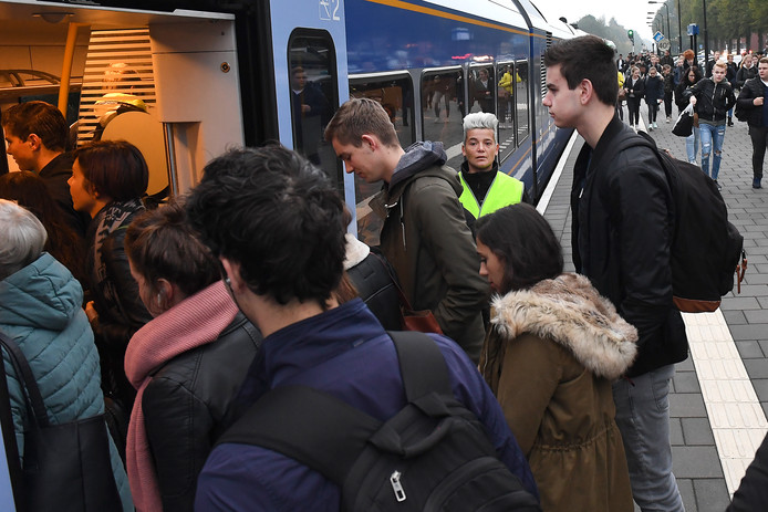 Als we het overvolle perron van Cuijk bereiken, zit er niets anders op. Het valkje zet een Moeder Theresa-gezicht op en roept dat de eerste klas nu toch opengaat: ‘Alleen voor ouderen!’