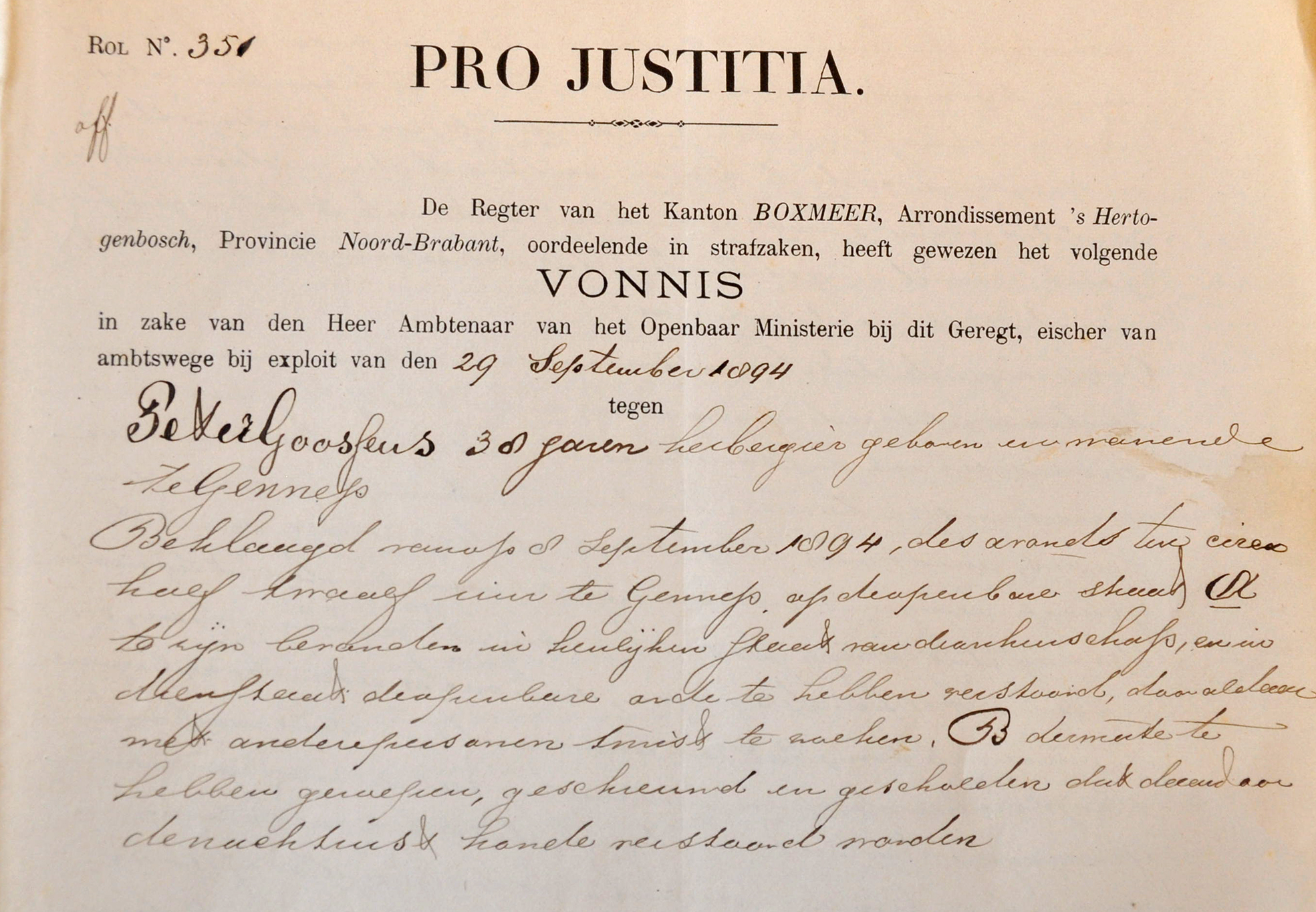 Werd de nachtrust van de brave Gennepse burgers, in de nacht van zaterdag 8 op zondag 9 september 1894, ernstig verstoord? Of was er hooguit wat rumoer geweest bij het uitgaan van de cafés? De kantonrechter van Boxmeer, mr A.J.F. Verheijen van Estvelt, had er op 12 oktober 1894 een zware dobber aan om dat vast te stellen. Hij had niet minder dan twintig getuigen opgeroepen in de hoop dat hun verklaringen hem zouden helpen bij het uitspreken van een verstandig vonnis.