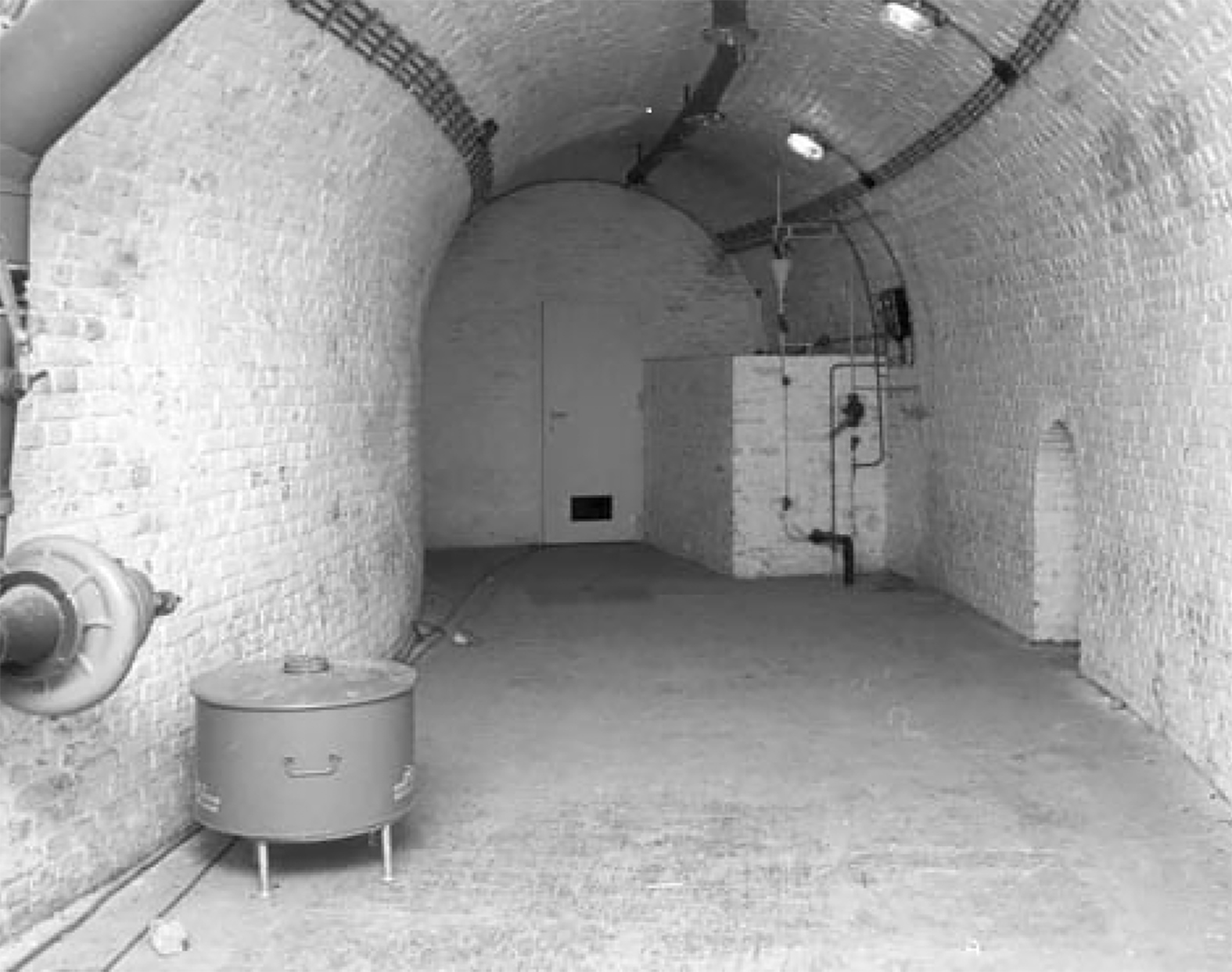 Bij de foto: Atoomschuilkelder in de kazematten van Maastricht (caponnière Waldeck), 1975. Fotocollectie RHCL Maastricht
