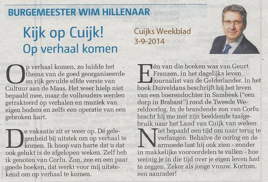 Geurt Franzen heeft met Duiveldans een topboek geschreven, prachtige zinnen, indrukwekkend familierelaas. (W. v.d. L. te Doetinchem)